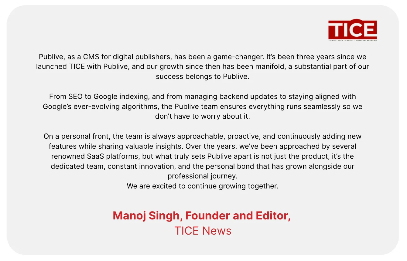With Publive’s UGC (User-Generated Content) feature, TICE launched a structured community initiative via Startup Club India - a dedicated space for entrepreneurs to share their journeys and viewpoints.